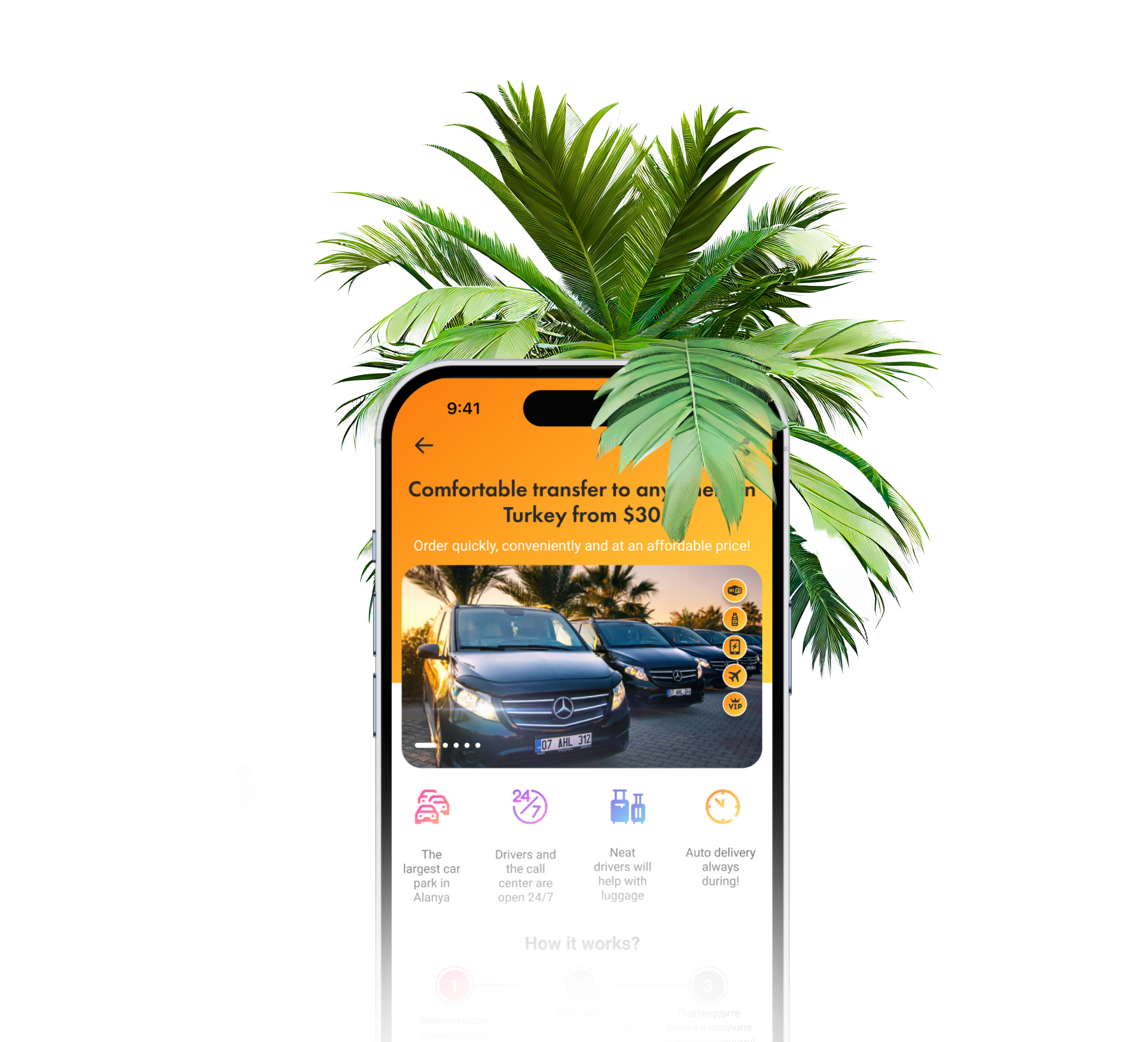 Заказ трансфера из аэропортов Анталия и Газипаша в Аланию - это, в первую очередь, ваше удобство! Возможность быстро и комфортно добраться до отеля или места встречи, не выпадая из ритма деловой жизни. Вас встретят в аэропорту, проводят до машины, отвезут в нужную точку. Машины оборудованы кондиционером, Wi-Fi, удобным столом для работы. Водитель точно соблюдает правила дорожного движения и гарантирует вашу безопасность.